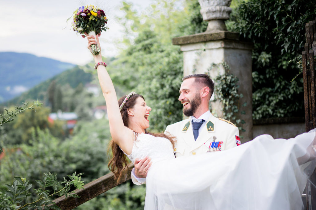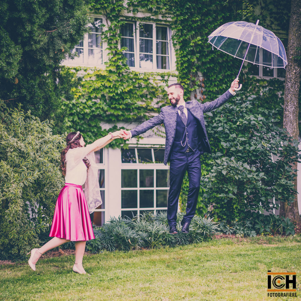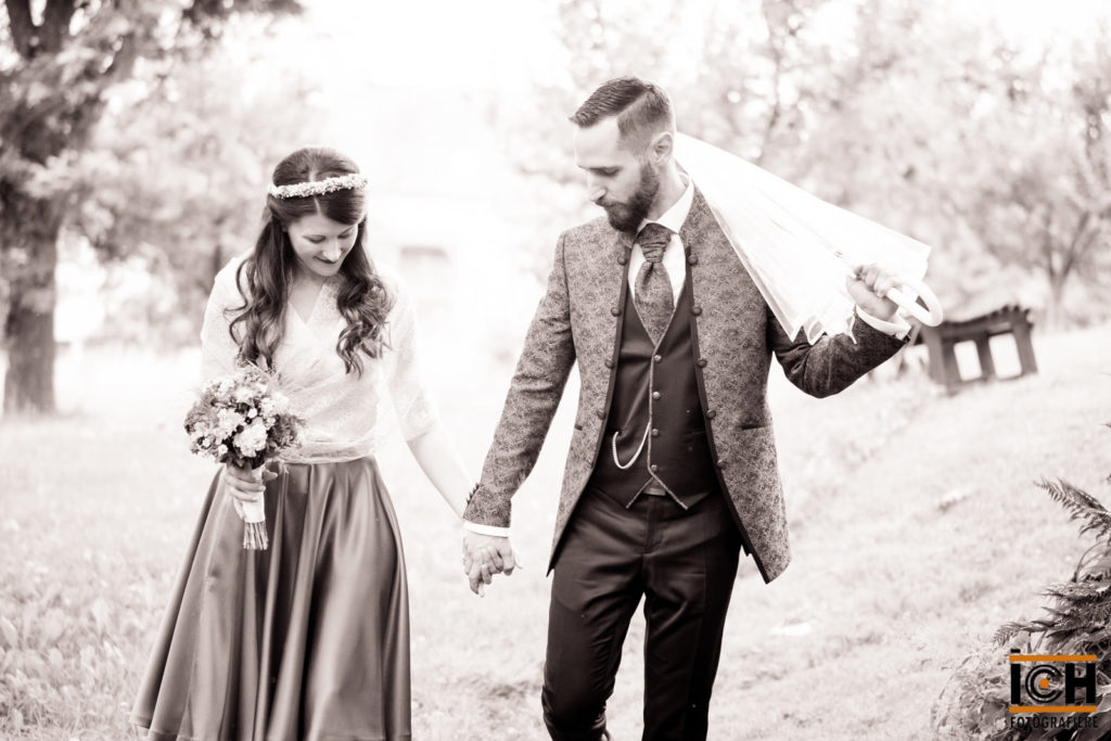 Ohne lange Vorreden – es war eine wunderschöne Hochzeit, die Claudia und Peter mit ihren Freunden und Familien am Weizberg gefeiert haben. Da konnten selbst die zwischenzeitlichen sintflutartigen Regenfälle nichts dran ändern. Ganz im Gegenteil, nach der Regenpause ging es mit den beiden noch einmal hochmotiviert zur zweiten Runde des Paar-Shootings.